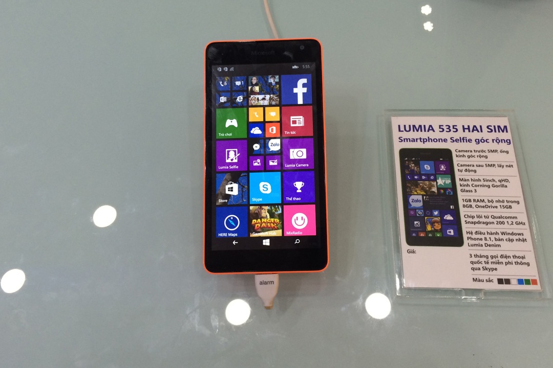 Lumia 535 - chiếc smartphone đầu tiên có gắn logo Microsoft sẽ chính thức bán ra thị trường Việt Nam từ hôm nay (3/12) với giá 3,49 triệu đồng. Các thông số đáng chú ý của máy bao gồm màn hình 5 inch qHD, chip lõi tứ Qualcomm Snapdragon 200 tốc độ 1,2 GHz, RAM 1GB, 2 camera độ phân giải 5 megapixel.