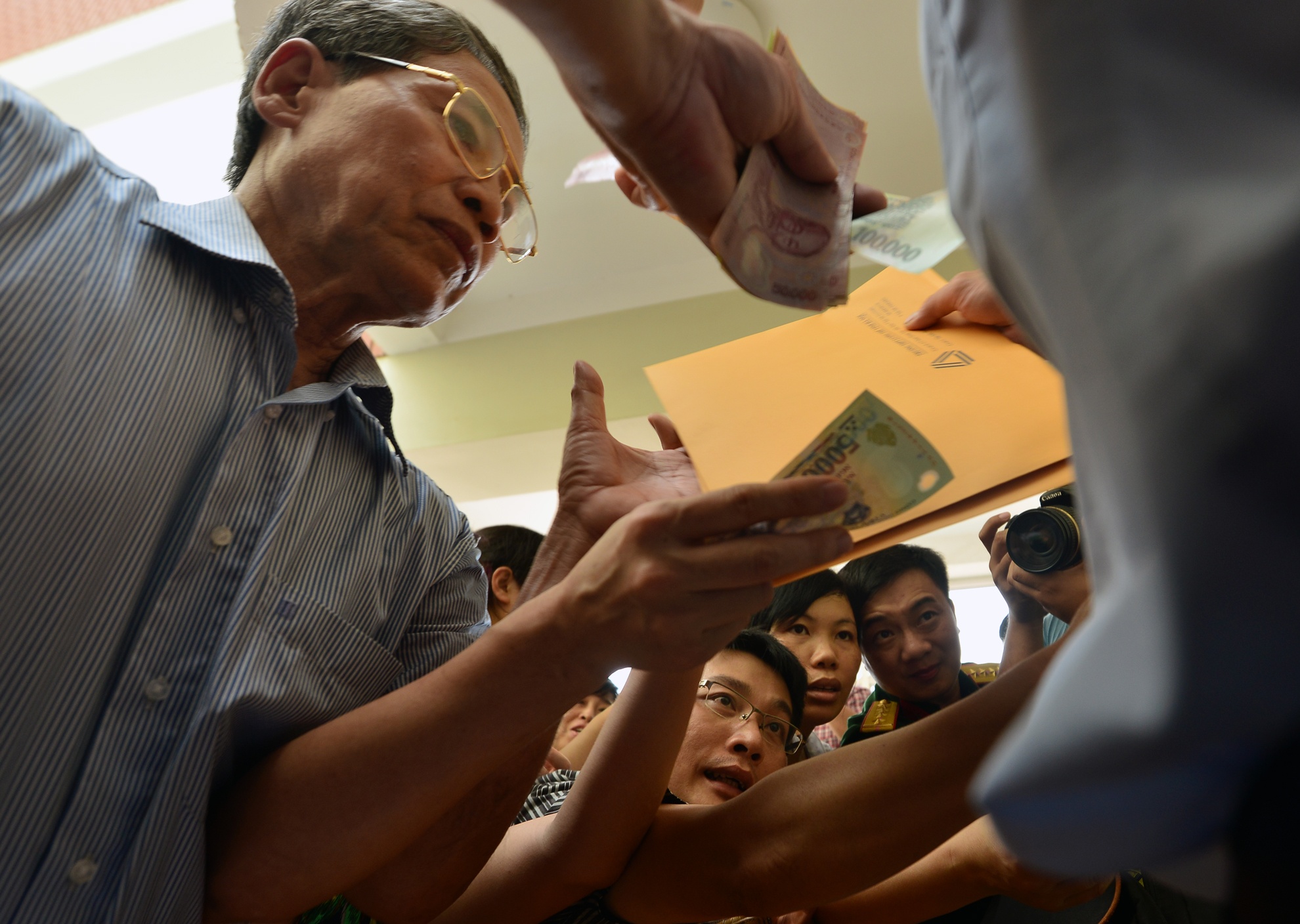 Việc bán hồ sơ phải dừng lại nhiều lần trong chiều nay do mới in xong và chưa kịp xếp đủ bộ.