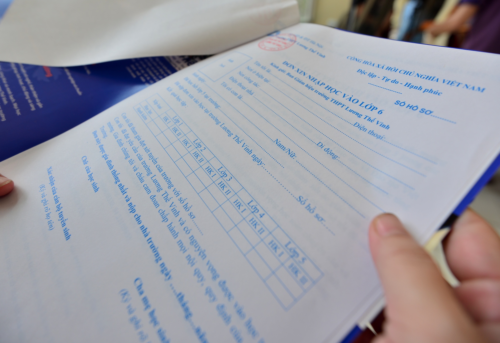 Một bộ hồ sơ giá 50.000 đồng, gồm thông tin tuyển sinh, đơn xin dự tuyển và đơn xin nhập học vào cấp 2, 3.