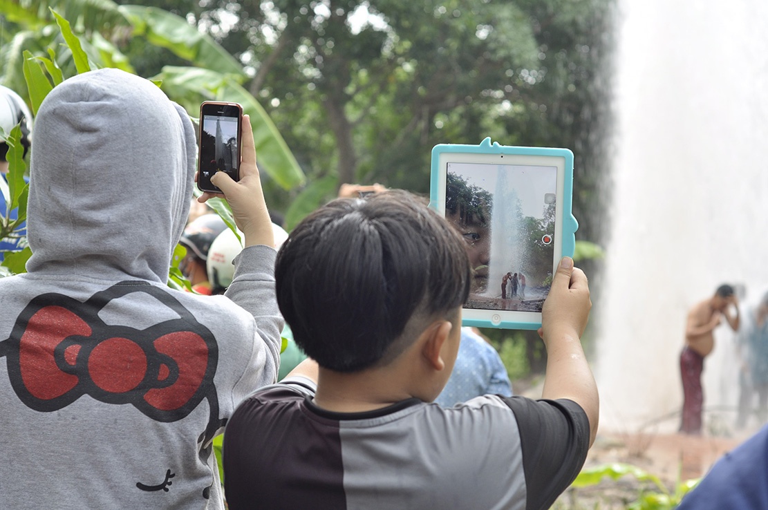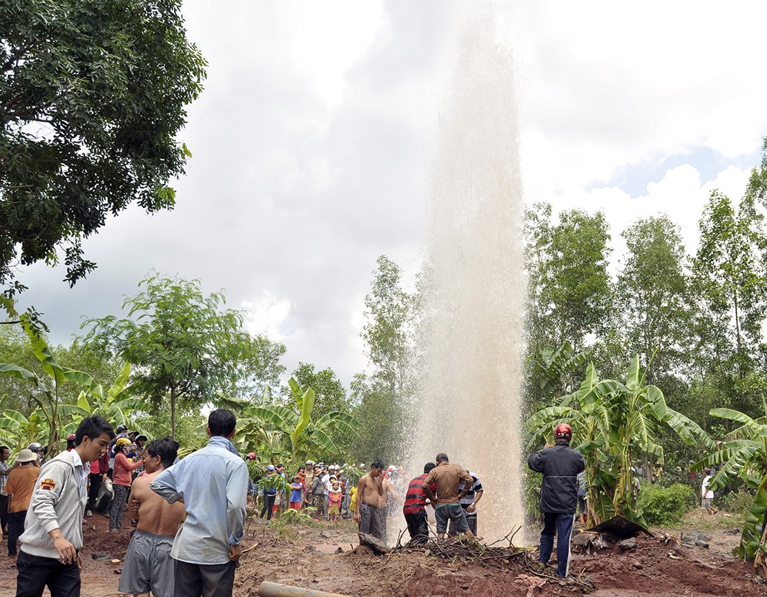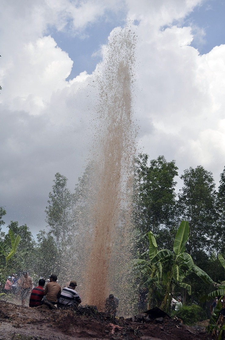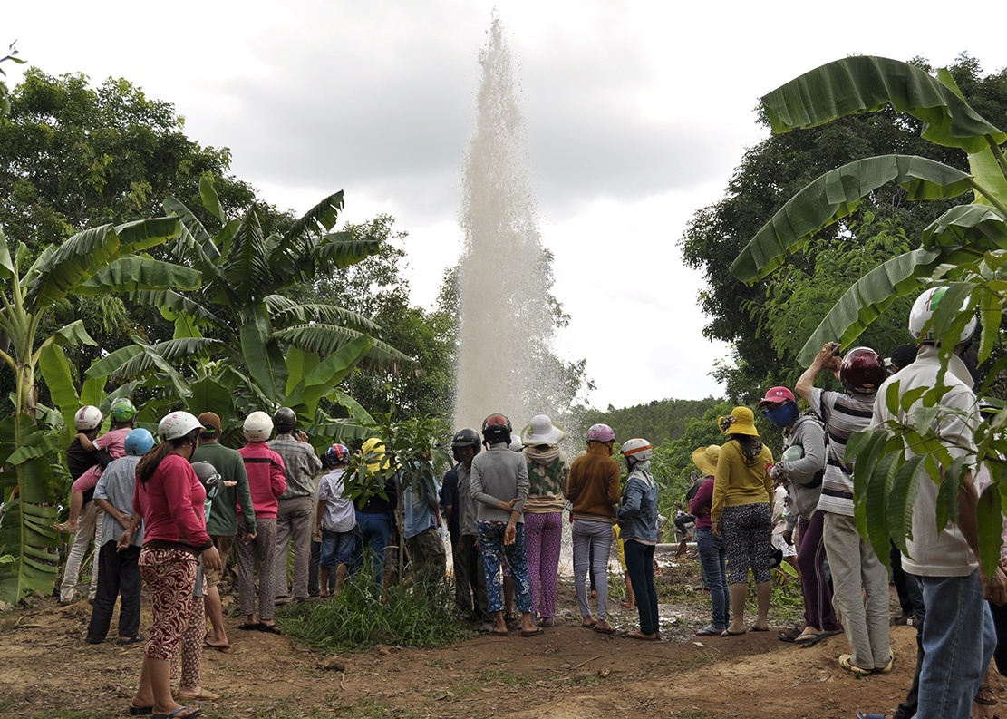 Hàng trăm người đến xem giếng phun nước cao 20 m