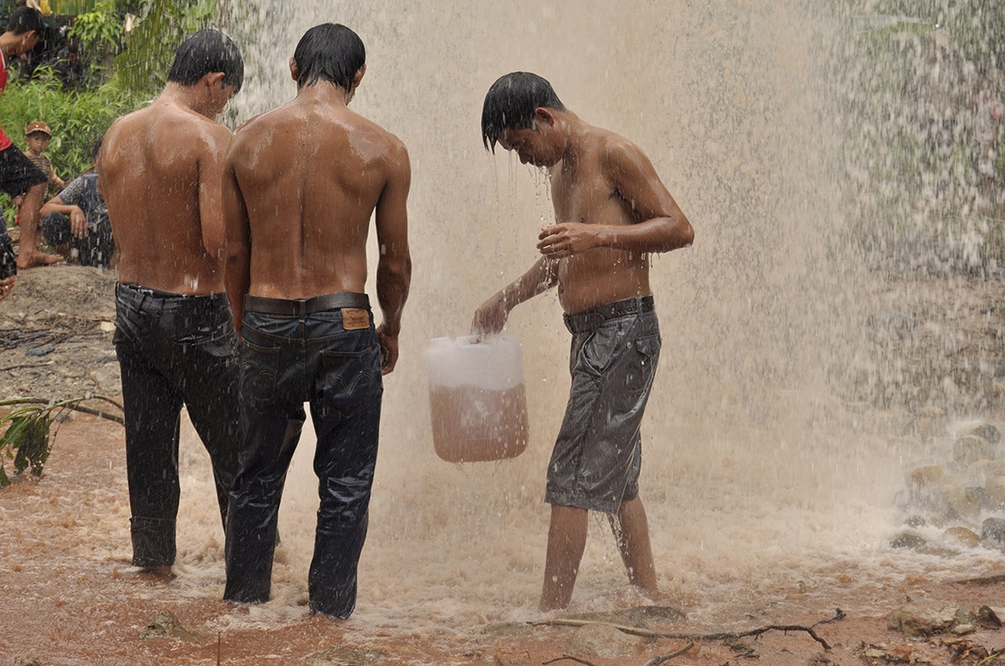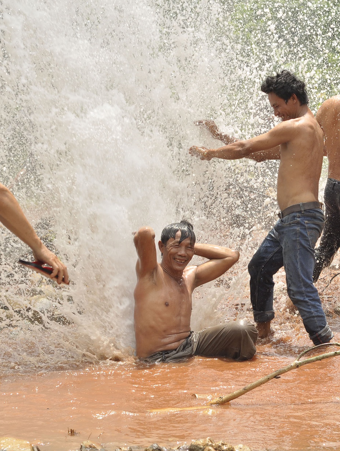 | Nhiều người dân hào hứng với giếng tự phun nên lao vào tắm, dùng can nhựa và chai nhỏ múc nước mang về dùng thử. |