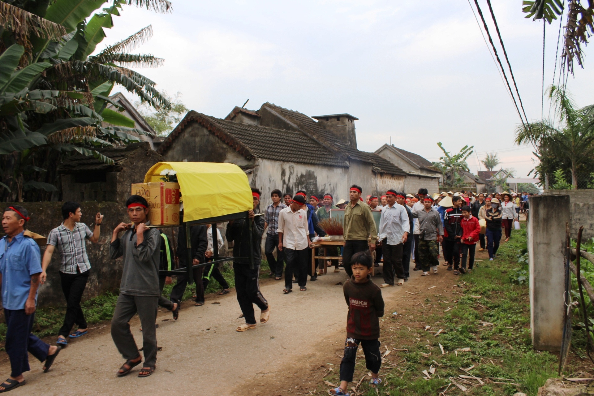 | Cũng như con người, cá voi được đoàn đưa tang cử những người khỏe mạnh để đẩy quan tài, phía sau là các ngư dân đi đưa tang.Đám tang cũng có trống kèn, cờ hoa. |