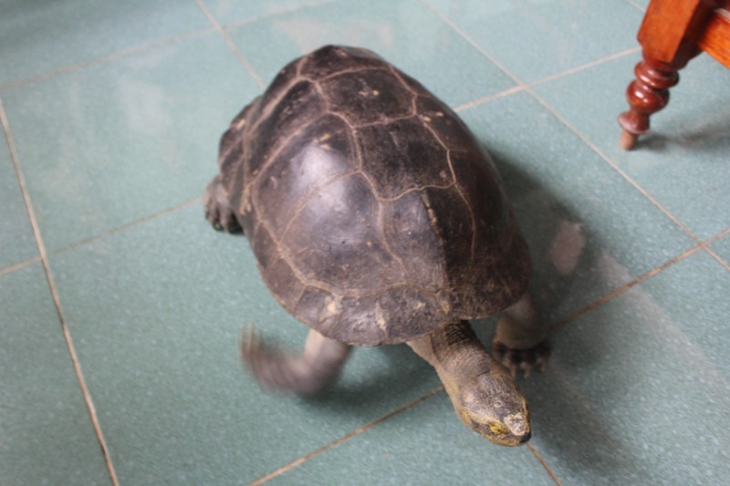 | Con rùa khá dạn, không sợ người mà liên tục bò xung xanh nhà. |