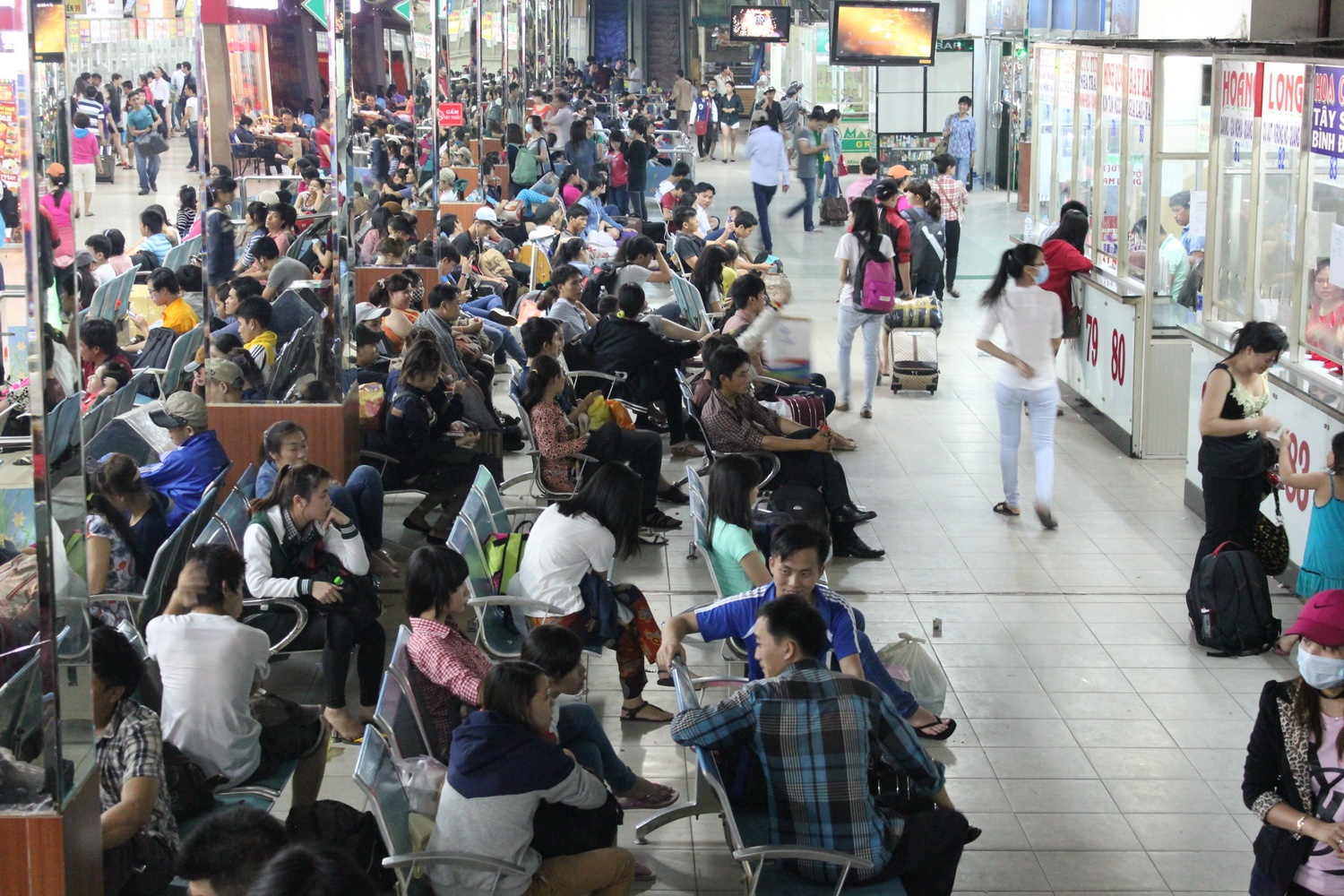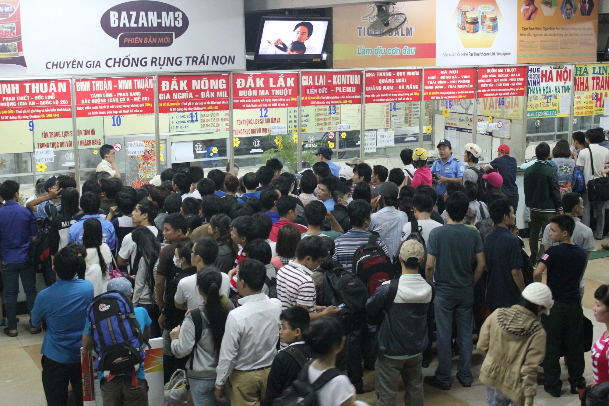| Cũng thời điểm này, nhiều người đang còn phải xếp hàng để mua vé về các tỉnh Tây Nguyên, Bình Thuận, Ninh Thuận. |