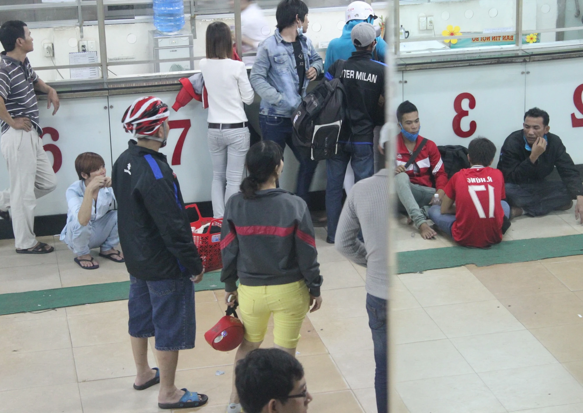 | Nhiều người ngồi chờ xe và mua vé từ chiều cho đến đêm. Anh Hoàng (quê Gia Lai), cho biết: "Vẫn biết cuối ngày 29/4 sẽ có rất nhiều người về quê nghỉ lễ nhưng tôi quá chủ quan, những tưởng ra bến là có thể mua được vé về liền nhưng đợi từ chiều cho đến tối vẫn chưa mua được, đành ngồi chờ". |