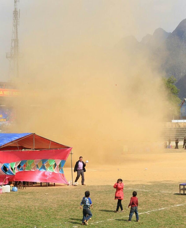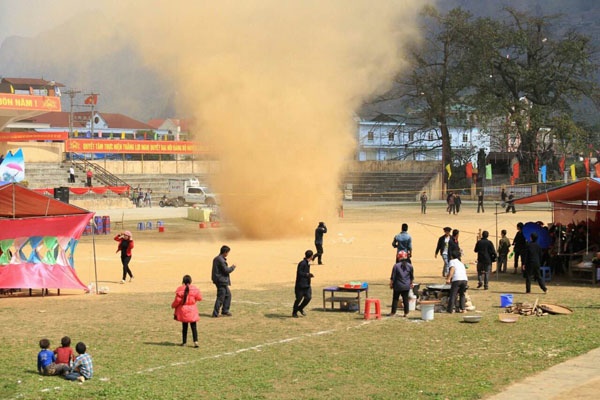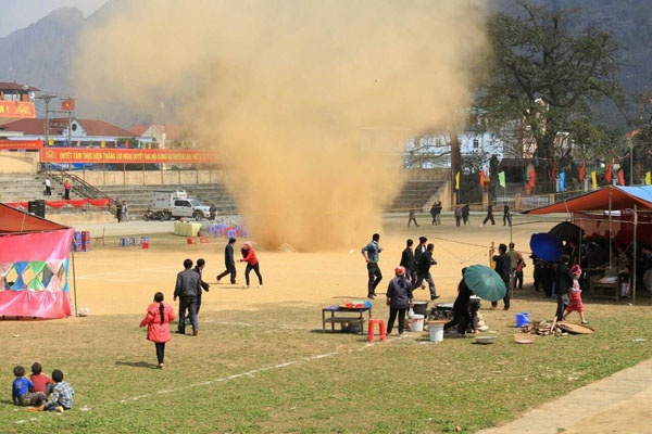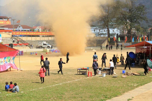 | Lốc xoáy xuất hiện đúng vào lúc kết thúc lễ khai mạc Ngày hội Văn hóa các dân tộc Mông huyện Mèo Vạc, tỉnh Hà Giang lần thứ nhất và lễ đón nhận bằng xếp hạng các di tích và di sản văn hóa quốc gia Quốc gia, tại sân vận động thị trấn Mèo Vạc. |
