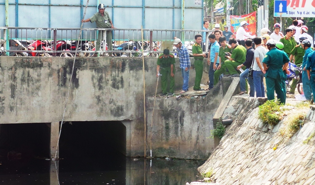 Hàng trăm người xem vớt cánh tay trôi dưới kênh ở Sài Gòn