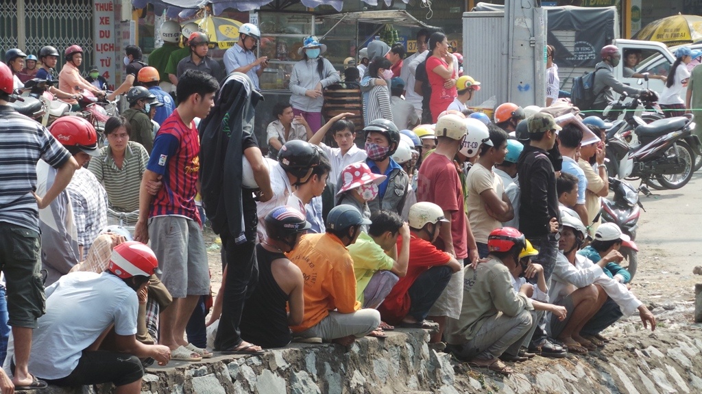 | Lúc này, hàng trăm người dân, người đi đường tập trung đông nghẹt 2 bên bờ kênh 19 Tháng 5 để theo dõi vụ việc. |