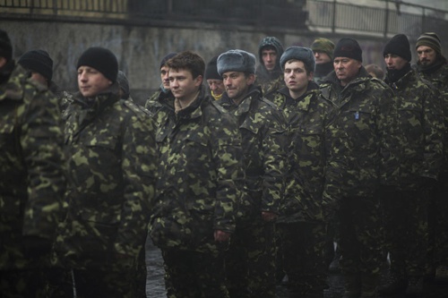 | Quân đội Ukraina được đặt trong tình trạng báo động vào cuối tuần trước sau khi quốc hội Nga cho phép Tổng thống Nga Putin điều quân tới nước này. Ảnh: Reuters. |