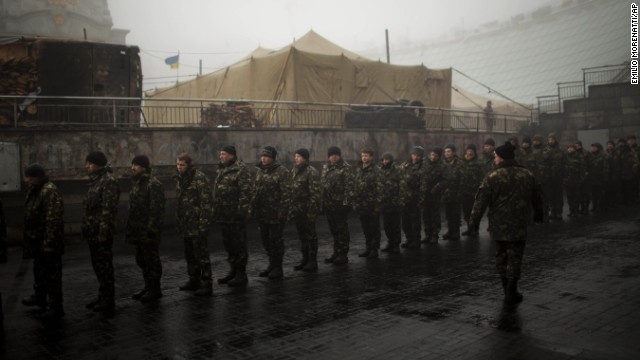| Phản ứng trước động thái trên từ Nga, hôm 2/3, Chủ tịch Hội đồng Quốc phòng và An ninh Quốc gia Ukraina Andriy Parubiy tuyên bố Kiev sẽ kêu gọi toàn bộ quân nhân dự bị để "đảm bảo an ninh và toàn vẹn lãnh thổ của Ukraina". "Tôi muốn tham gia chiến đấu. Tôi không hề muốn chiến tranh, nhưng nếu nó xảy ra, tôi phải có nghĩa vụ lên đường chiến đấu. Tôi phải bảo vệ đất nước mình ", Roman Surzhikov, một kỹ sư, đồng thời là quân nhân dự bị 33 tuổi, chia sẻ với AFP về lý do đăng ký nhập ngũ của anh. Ảnh: CNN. |