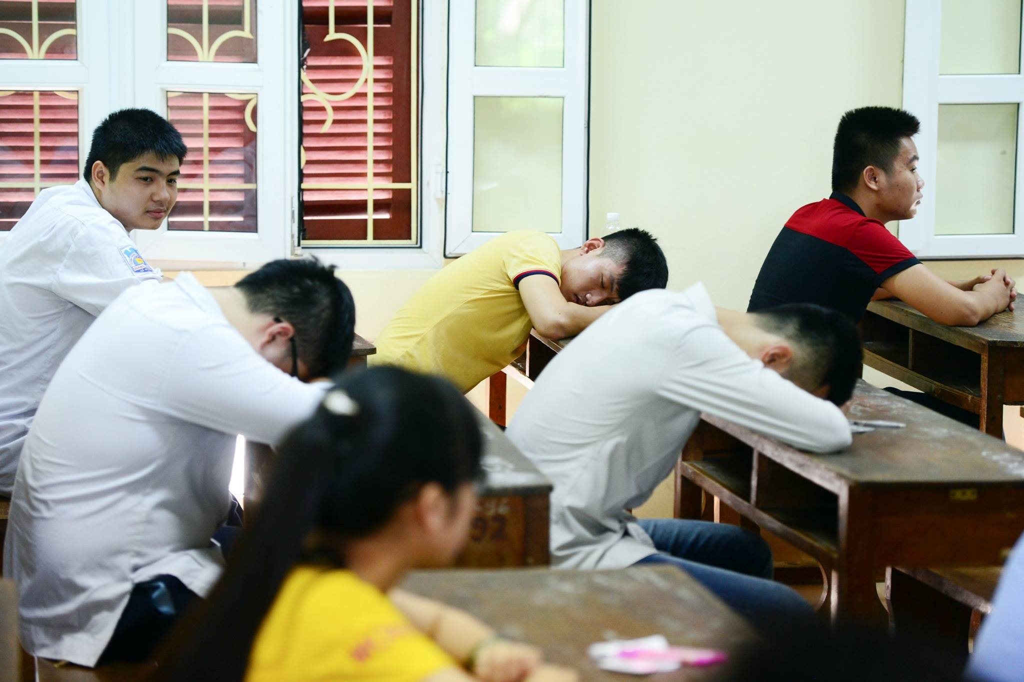 | Thí sinh mệt mỏi trong thời tiết nắng nóng. Ảnh: Anh Tuấn. |