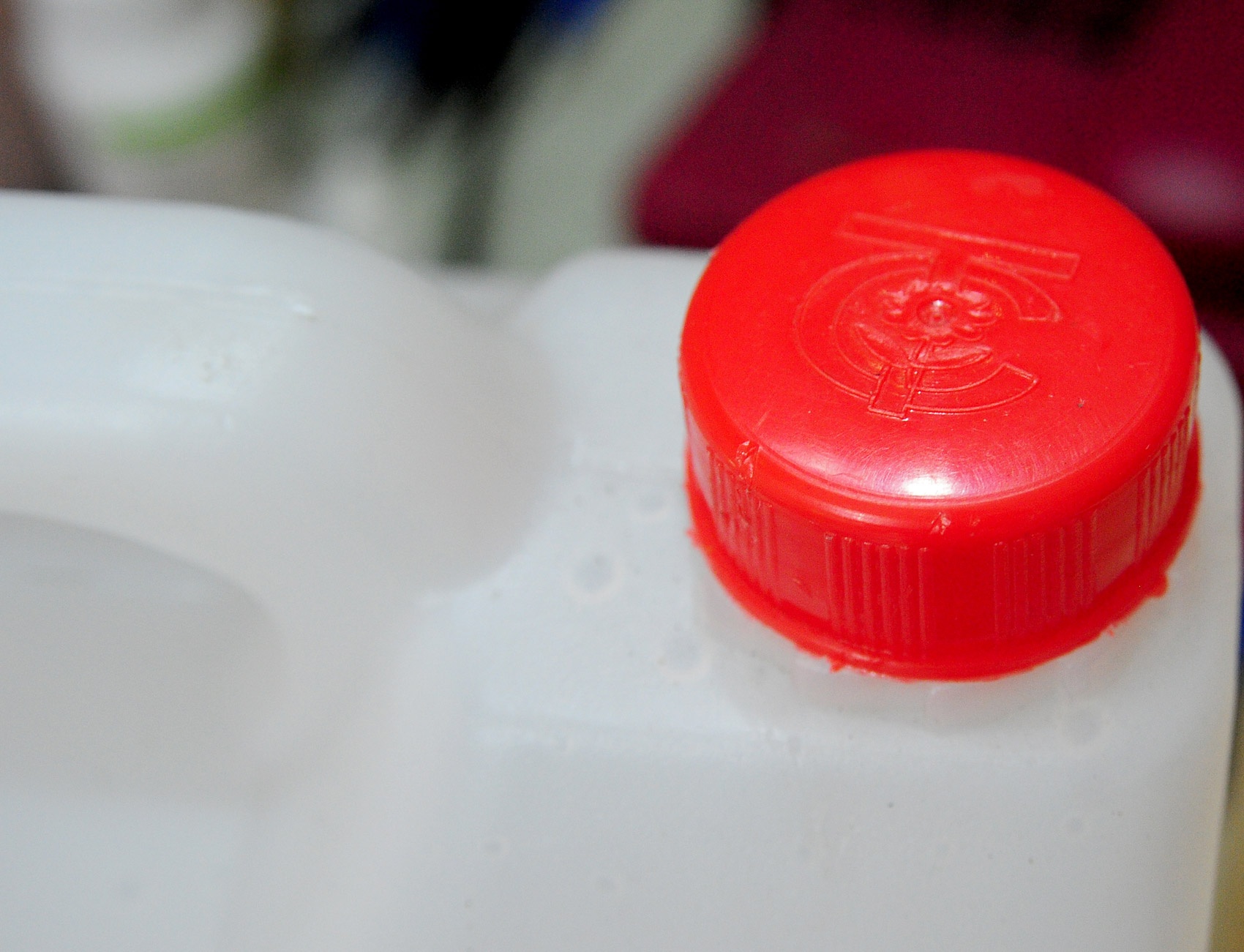 Hóa chất bán tại các cửa hàng trên phố Hàng Buồm chủ yếu đóng trong túi hoặc can nhựa.