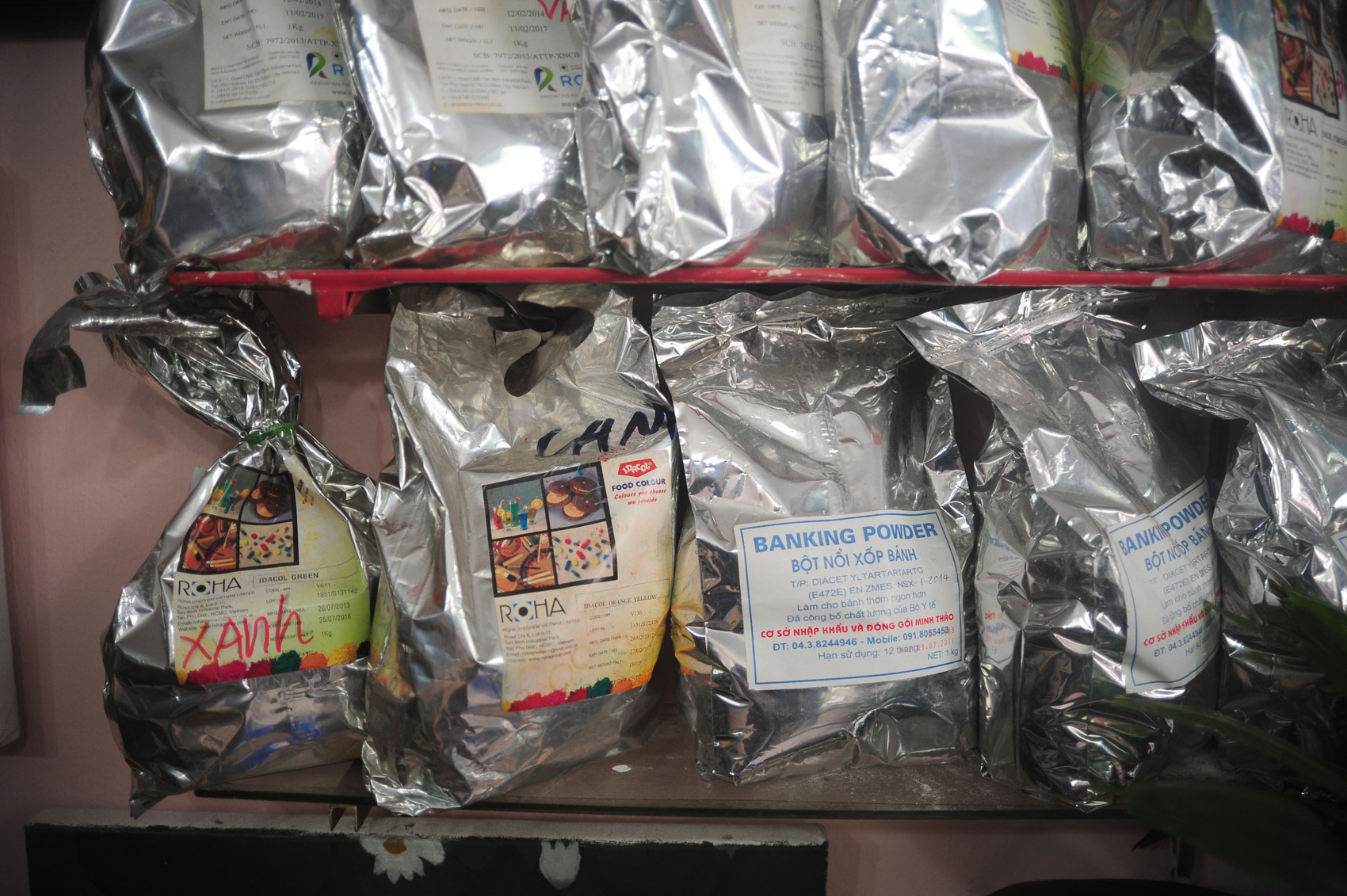 | Hiện tại, chị Huyền chủ yếu kinh doanh các loại bột dùng để làm kem, bánh. Bên cạnh đó, chị còn bán tinh dầu, phẩm màu công nghiệp, bột nở, chất phụ gia làm giòn, làm dính thực phẩm. |
