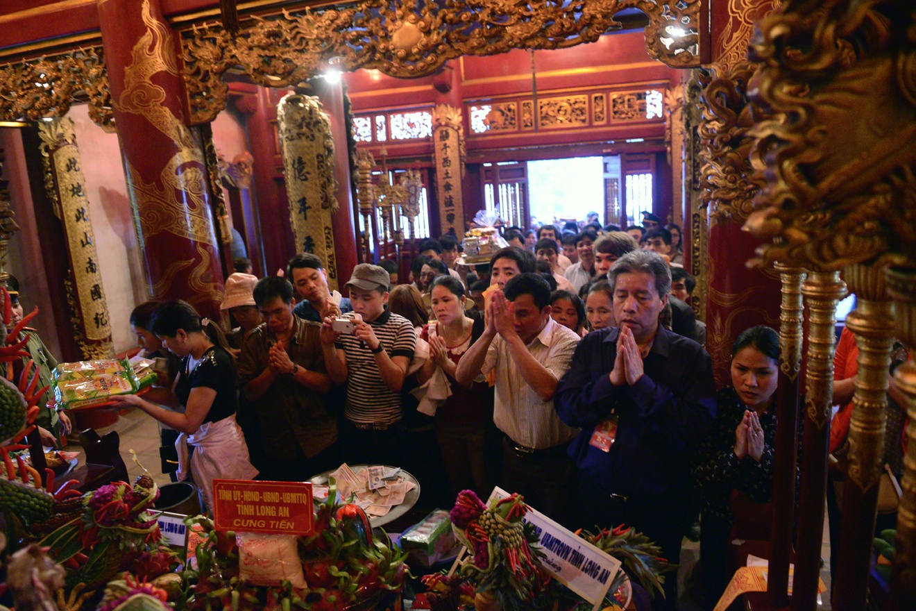 | Đền Thượng chật kín du khách thập phương dâng hương. |