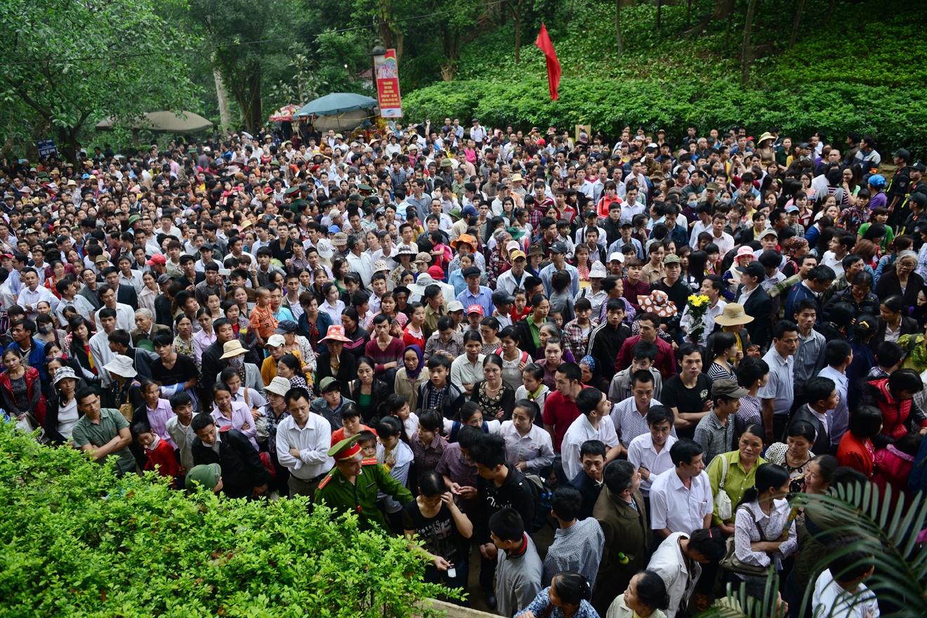 | Sau khi đoàn dâng hương chính tại Đền Thượng kết thúc, hàng vạn dân và du khách ồ ạt chen chân kéo lên đồi làm lễ. |