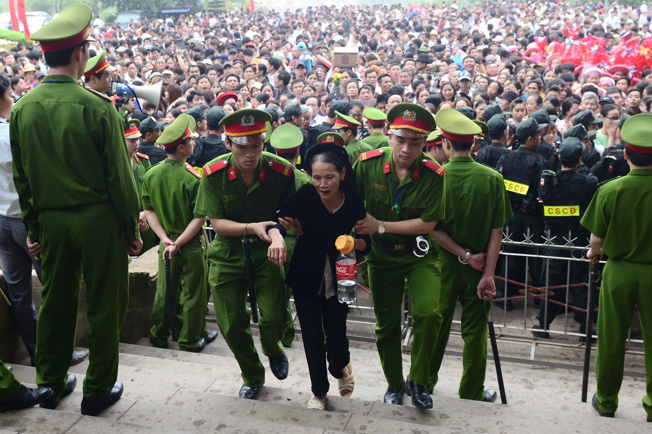 | Những du khách cao tuổi ngất xỉu, quá mệt mỏi vì chờ đợi đã được lực lượng an ninh dìu lên trạm y tế để nghỉ ngơi. |