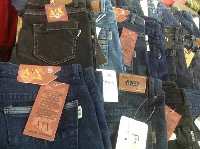 Quần gắn mác Prada, Mango giá siêu rẻTrên thị trường, đặc biệt là tại các chợ sinh viên, chợ giá rẻ, rất nhiều loại quần áo, túi, giày được gắn mác của các thương hiệu nổi tiếng thế giới đang bán với giá rất rẻ. Nhiều chiếc quần jean được gắn 2 loại mác có giá trên 100.000 đồng, còn kính hiệu Fendi, Dior hàng nhái với đầy đủ mác giấy, thông số kỹ thuật, giá chỉ 35.000 đồng.