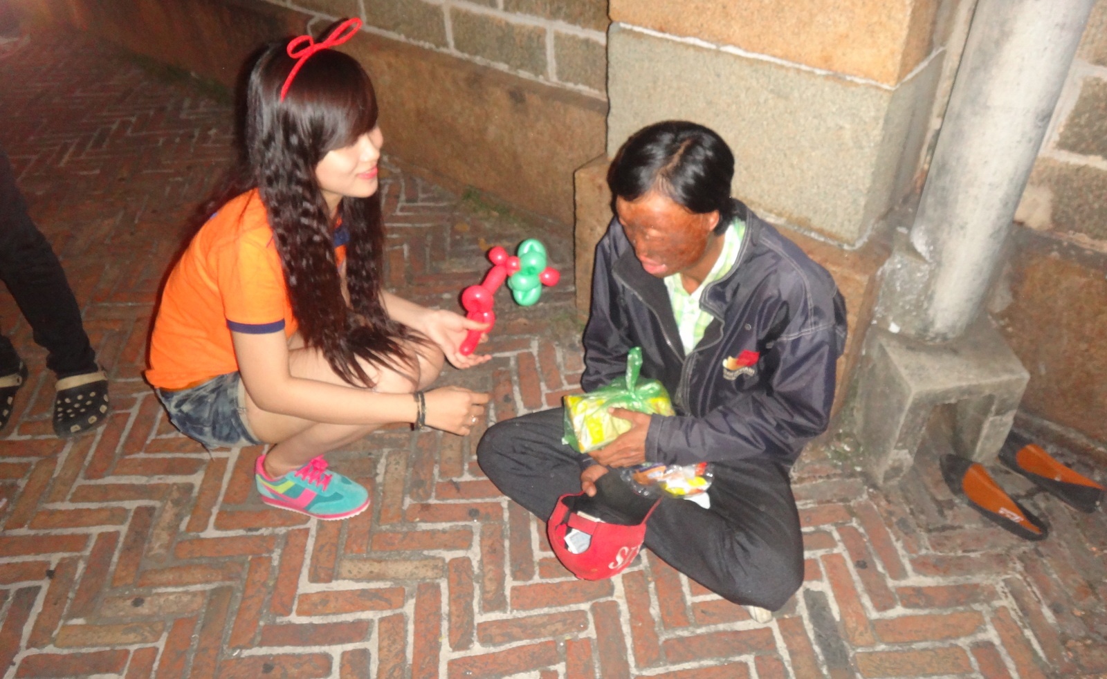 Trước đó, từ chiều nhóm cũng xuống đường để tặng quà cho những người vô gia cư, khó khăn.