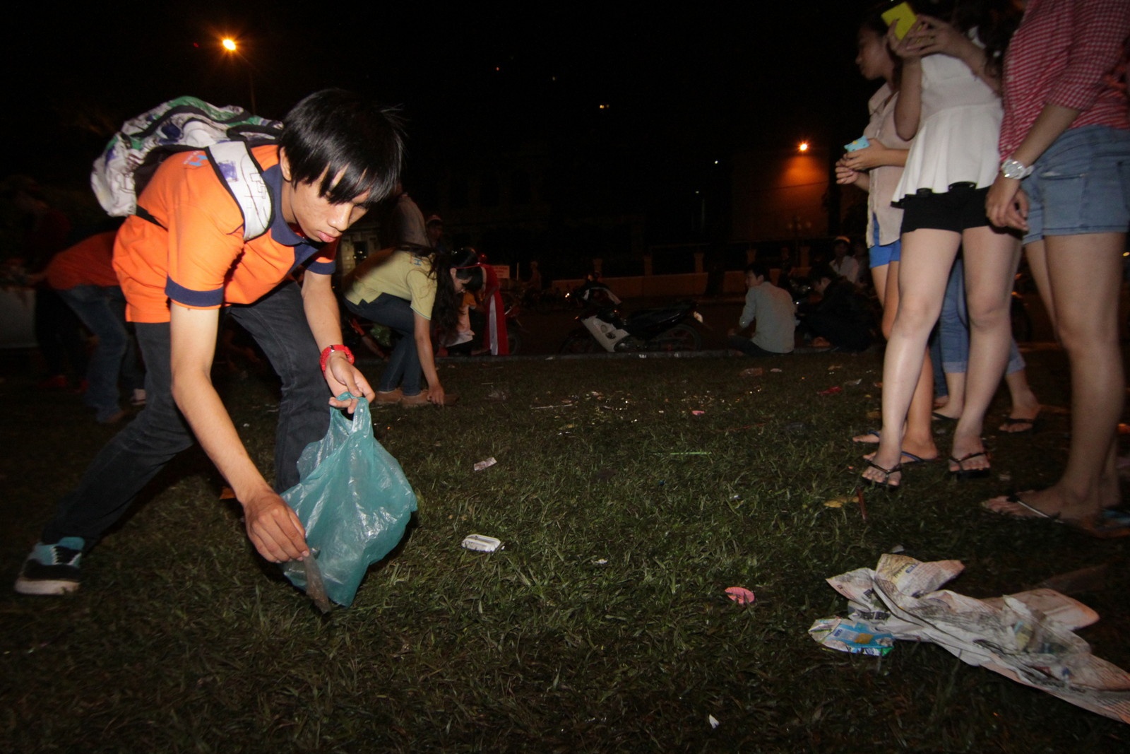 Sau khi kết thúc cuộc vui đêm Giáng sinh, một nhóm bạn trẻ đã tự động nhặt, quét rác ở khu vực mình tụ tập vui chơi.