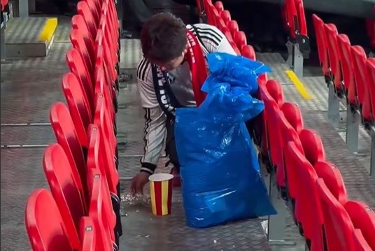 Sau khi trận đấu khép lại, các cổ động viên Nhật Bản nán lại để thu gom rác thải tại khu vực khán đài của mình. Hình ảnh này nhanh chóng được tài khoản chính thức của sân Wembley chia sẻ kèm lời cảm ơn, qua đó nhận về nhiều lời khen ngợi từ cộng đồng mạng quốc tế.