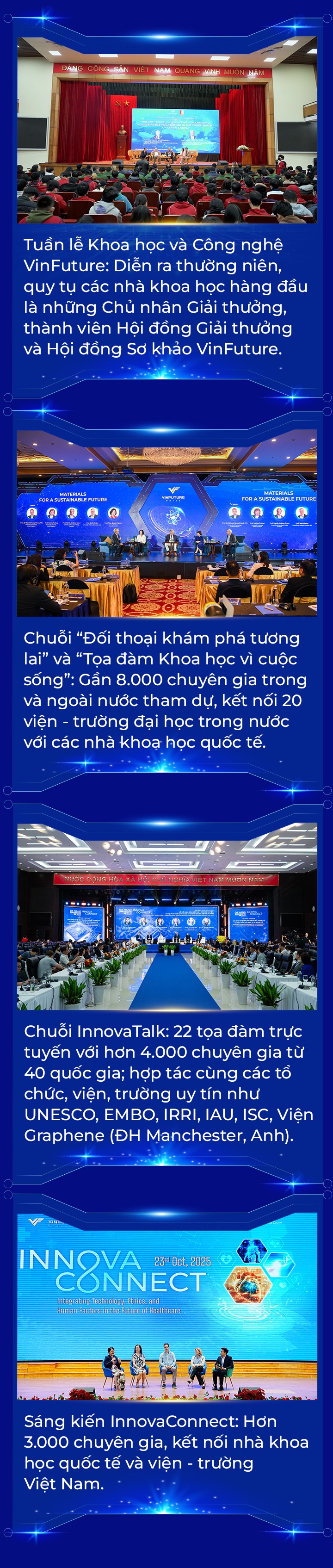 Từ những ý tưởng mang tầm nhìn toàn cầu, VinFuture không chỉ tôn vinh công trình khoa học xuất sắc mà còn tạo nên mạng lưới kết nối tri thức rộng lớn, truyền cảm hứng đổi mới đến cộng đồng nghiên cứu trên thế giới.