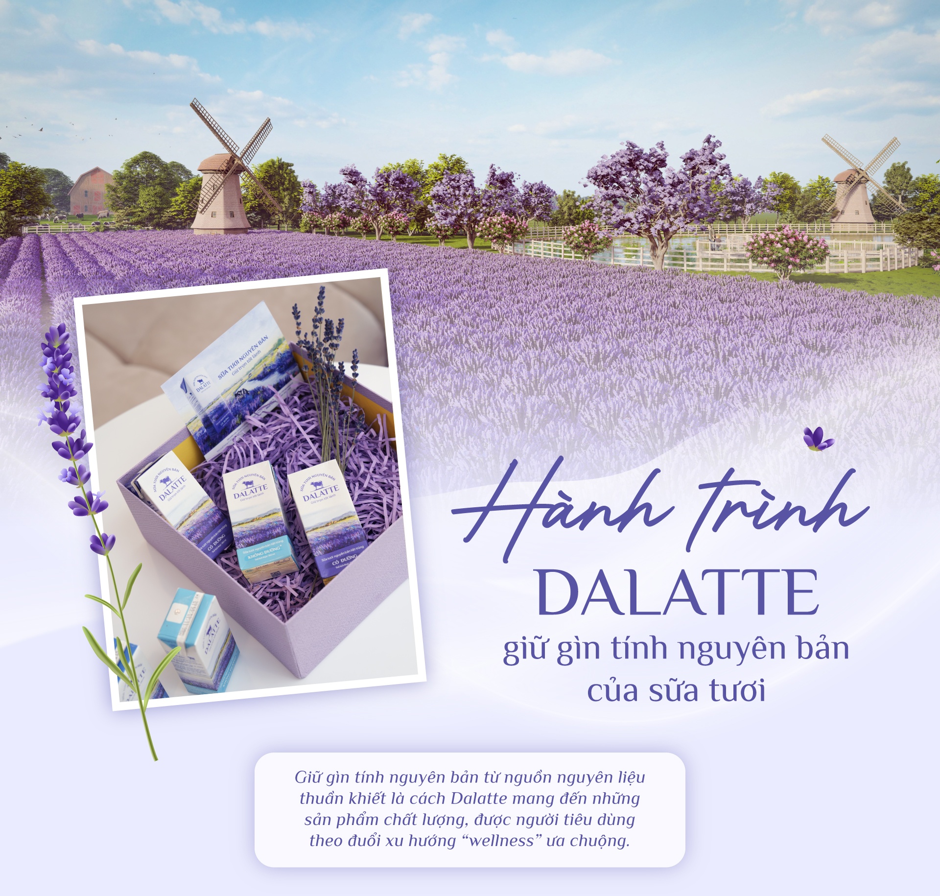 Thấu hiểu sự thay đổi trong nhu cầu lựa chọn sữa tươi của khách hàng, “nguyên bản” cũng trở thành giá trị cốt lõi mà Dalatte theo đuổi nhằm mang đến trọn vẹn nguồn dinh dưỡng tốt lành và hương vị thuần khiết từ dòng sữa tươi thuần chất.