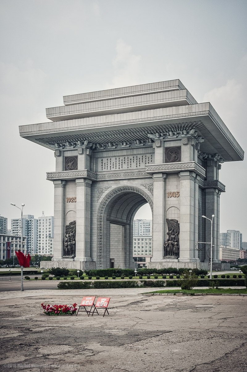 | Khải hoàn môn tại Bình Nhưỡng được xây dựng để kỷ niệm phong trào kháng chiến của người Triều Tiên trước Nhật Bản 1925 - 1945. Đây là khải hoàn môn cao thứ hai thế giới, sau công trình ở Mexico. |