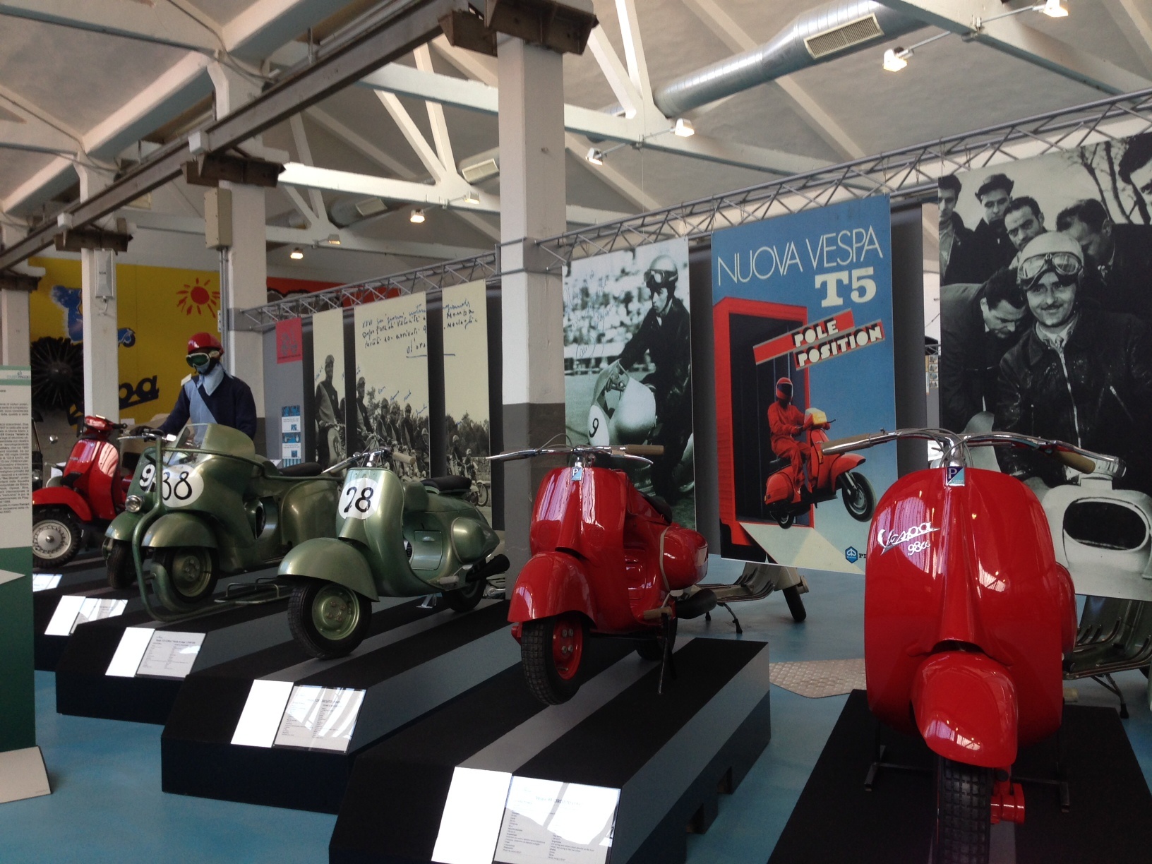 Cạnh nhà máy chính là bảo tàng Vespa, trưng bày từ những mẫu xe đầu tiên viết nên lịch sử của Vespa đến những chiếc xe mới toanh được các họa sĩ nổi tiếng trên thế giới trang trí. “À, ồ” là những lời được thốt ra từ tất cả những ai có mặt tại đây, chưa bao giờ chúng tôi được ngắm nhìn những huyền thoại này trực tiếp, được chụp ảnh chúng.