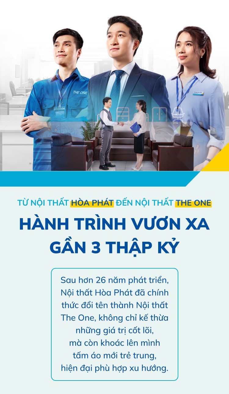 Ngày 5/1, Nội thất Hòa Phát chính thức đổi tên thành Nội thất The One với mục tiêu “nối dài hành trình cống hiến vì cuộc sống tốt đẹp hơn của người Việt”. Kế thừa và phát huy giá trị cốt lõi của Nội thất Hòa Phát từ ngày đầu thành lập, Nội thất The One với diện mạo trẻ trung, hiện đại, tiếp tục cam kết mang đến những sản phẩm chất lượng, đa dạng, tiện dụng cho thị trường.