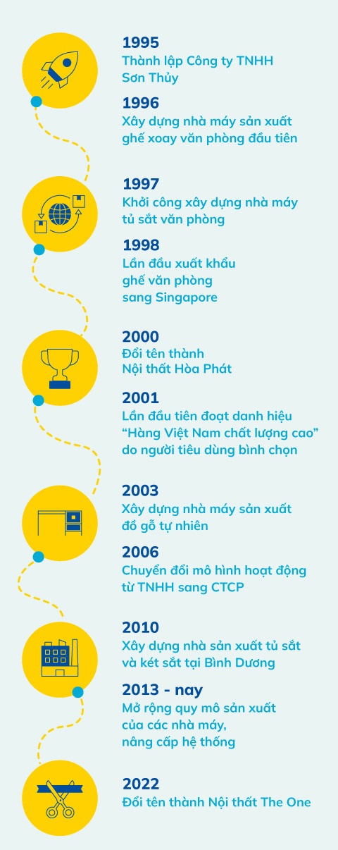 Theo năm tháng, từ cô học trò nhỏ trở thành sinh viên rồi đi làm văn phòng, Ngọc Phương vẫn gắn bó với những bộ bàn ghế in logo Nội thất Hòa Phát. Nhưng không phải ai cũng biết tên gọi đầu tiên của thương hiệu này không phải là Hòa Phát, mà là Công ty TNHH Sơn Thủy, được thành lập vào cuối năm 1995 với mục tiêu tập trung phát triển và phân phối các sản phẩm nội thất phục vụ thị trường nội địa.