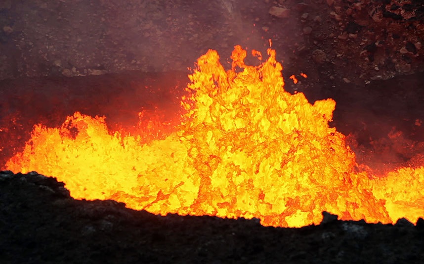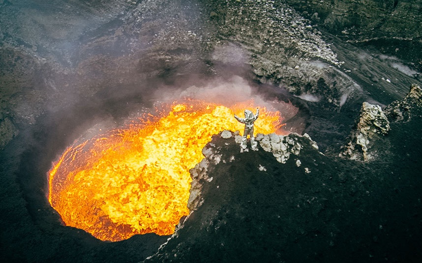 | Nhóm nghiên cứu tạo mô hình 3D quy mô lớn đầu tiên của một ngọn núi lửa và hồ dung nham. Các nhà thám hiểm mặc quần áo chịu nhiệt trong công nghiệp xây dựng. Chúng có thể chịu bức xạ nhiệt lên tới hơn 16.000 độ C. |