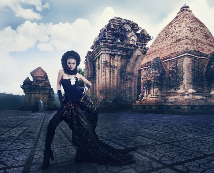 Mâu Thanh Thủy trở thành người dẫn đầu thử thách chụp ảnh với trang phục dân tộc. Vẻ đẹp mạnh mẽ được cô phát huy tối đa trong cách diễn đặt cảm xúc và cách tạo dáng rất cá tính.