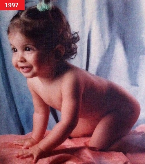 | Năm 1999: Andrea sở hữu cặp mắt to tròn và khuôn miệng rộng với nụ cười tươi tắn. |