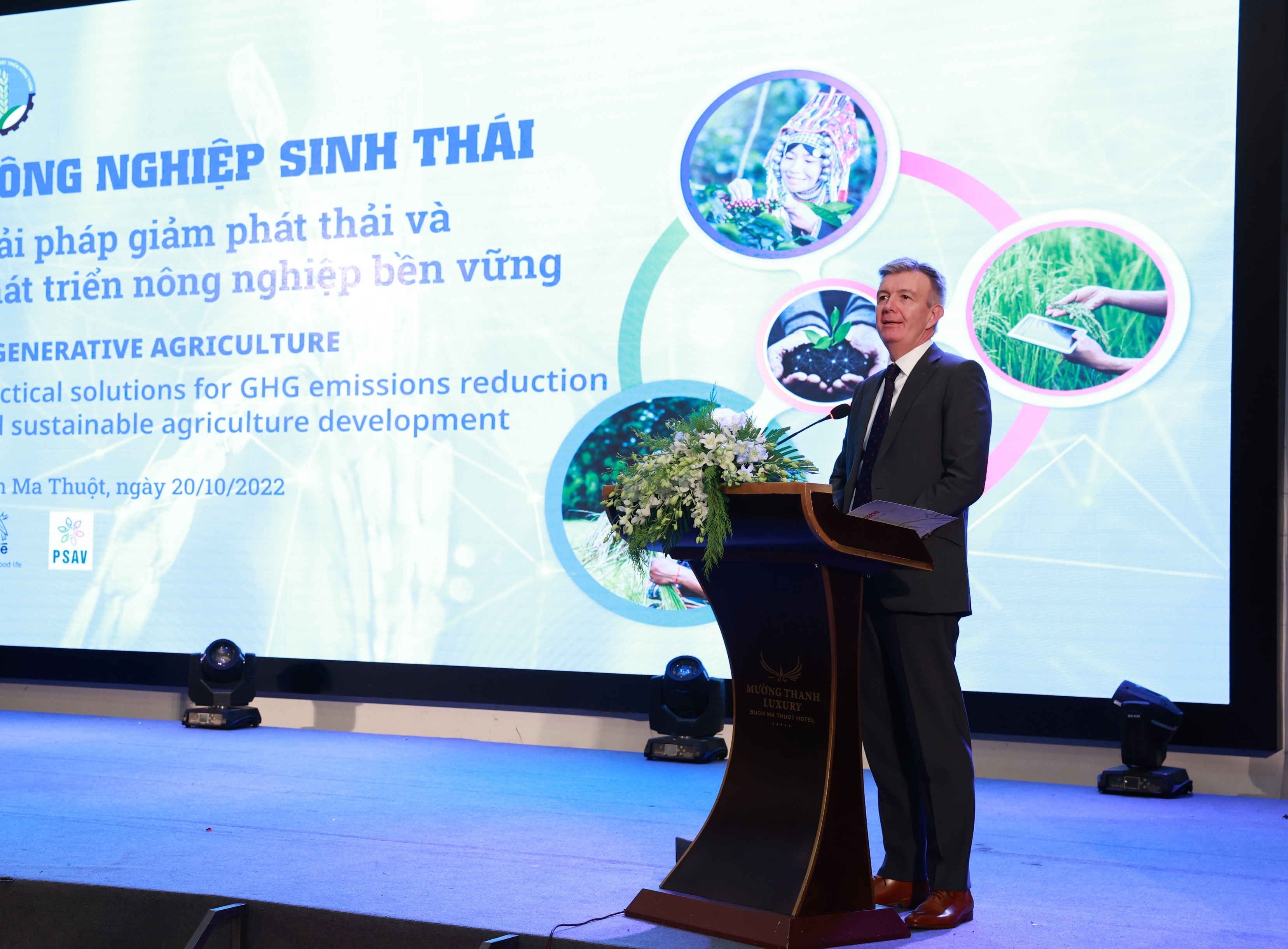 Ông Rennie cho rằng cần giải quyết vấn đề tăng trưởng của ngành, đi đôi thực hành nông nghiệp tái sinh, đồng thời chỉ ra thành công của thị trường Việt Nam trong vấn đề này. “Tôi rất mừng khi thấy Việt Nam đạt được nhiều thành tích về xử lý vấn đề phát thải và tăng năng suất ở các trang trại cà phê. Các bạn có thể làm được cả hai thứ chứ không cần chọn một trong hai”, ông Rennie nói.