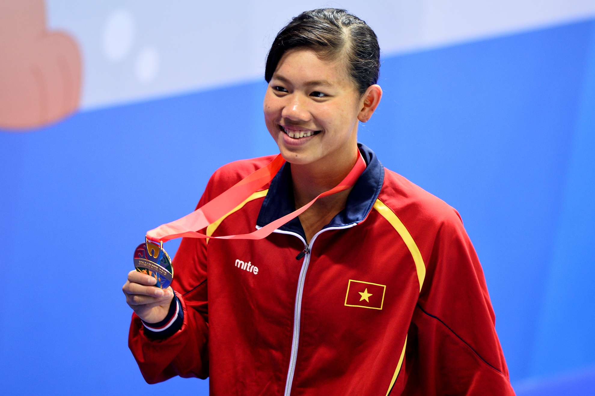 Ánh Viên tự hào và hạnh phúc khi đem về tấm HCV thứ 3 cho Đoàn thể thao Việt Nam.