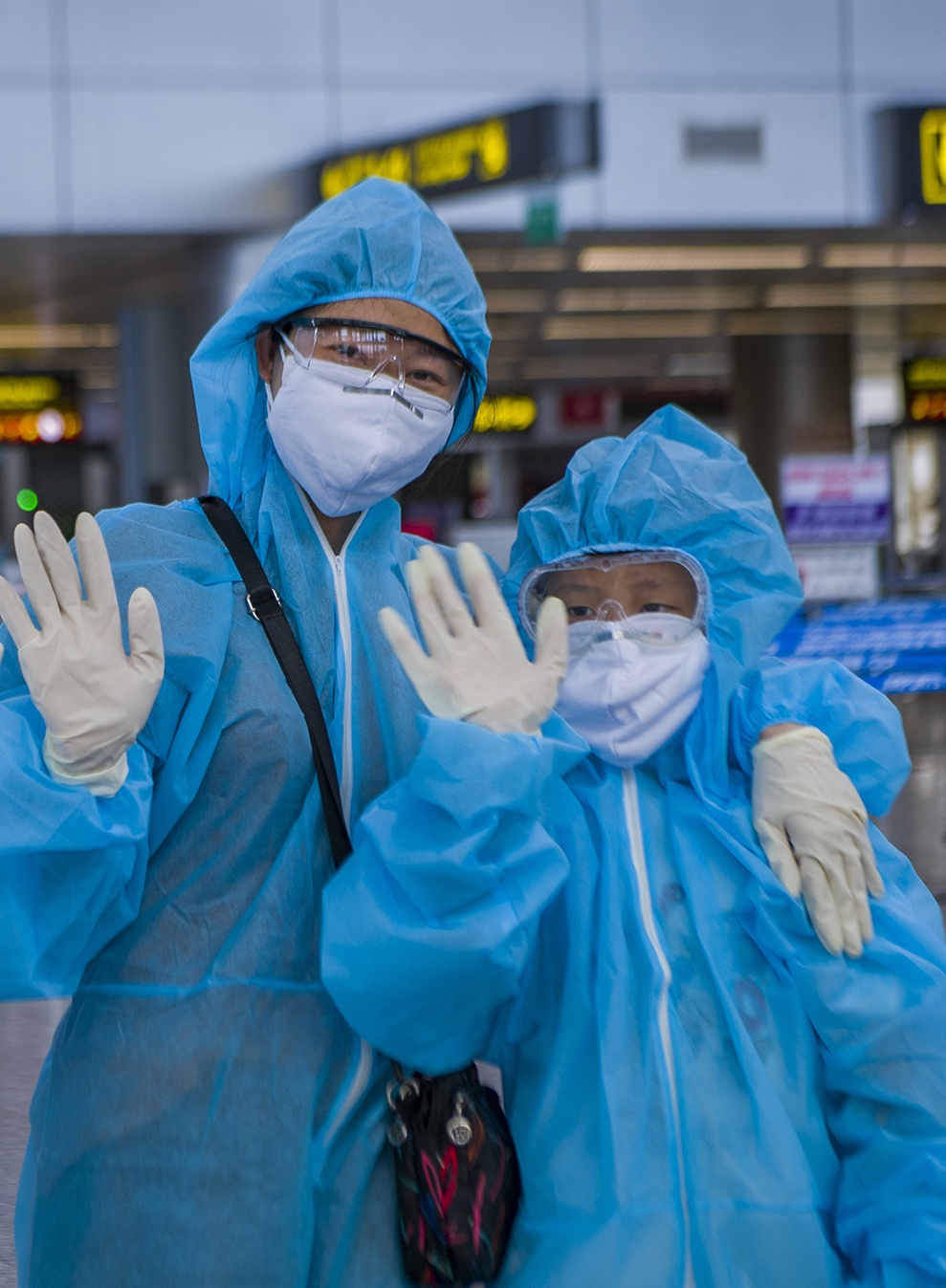 | Được thông báo cần sớm ra sân bay làm thủ tục, chúng tôi khẩn trương chuẩn bị mọi thứ. Việc không thể quên là trang bị dụng cụ bảo hộ, khẩu trang phòng dịch. |