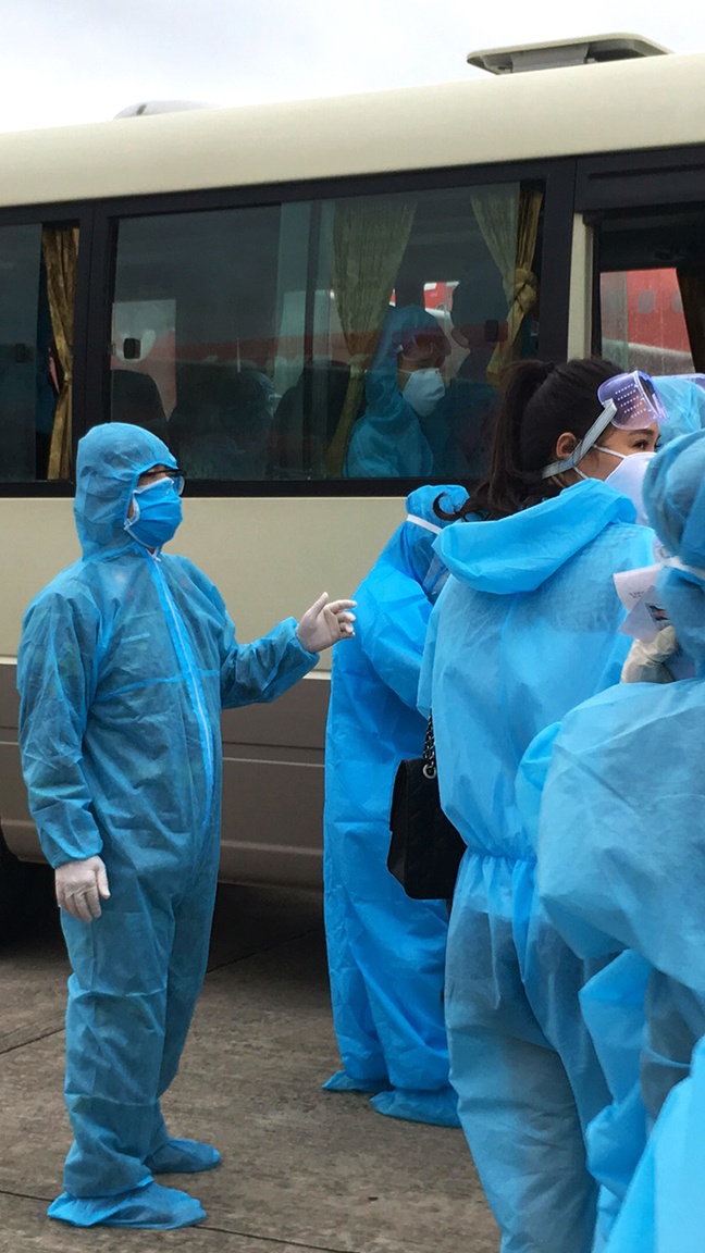 | Chúng tôi sau đó di chuyển đến khu cách ly bằng ôtô. Nơi này cách sân bay khoảng 60 km, thuộc thị xã Sơn Tây, Hà Nội. Di chuyển đường dài khiến tôi và các con cảm thấy mệt. Nhưng tâm trạng mọi người đều ổn khi xác định việc cách ly là để bảo vệ sức khỏe bản thân và cộng đồng. |
