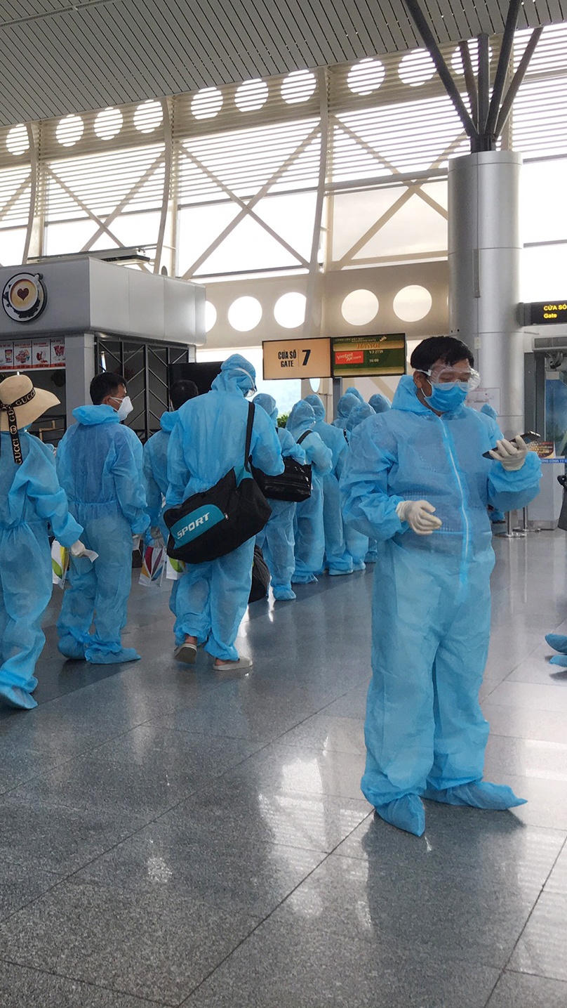 | Sau khoảng 1 h, máy bay hạ cánh xuống Cảng hàng không Nội Bài. Tôi thở phào nhẹ nhõm vì đã đến nơi an toàn. Biết còn phải trải qua 14 ngày cách ly nhưng cả nhà đều yên tâm. Tôi nghĩ về bố mẹ ở Đà Nẵng, thật lòng vẫn rất lo vì mọi người còn ở tâm dịch. |
