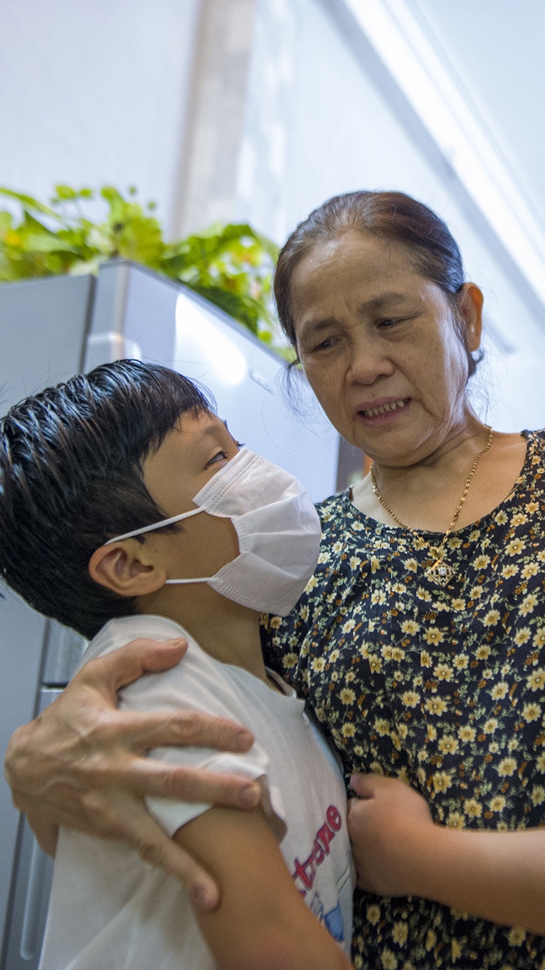 | Trong lúc tôi dọn hành lý, các con tôi quấn quýt bà ngoại. Các cháu ôm hôn bà, không muốn rời đi. |