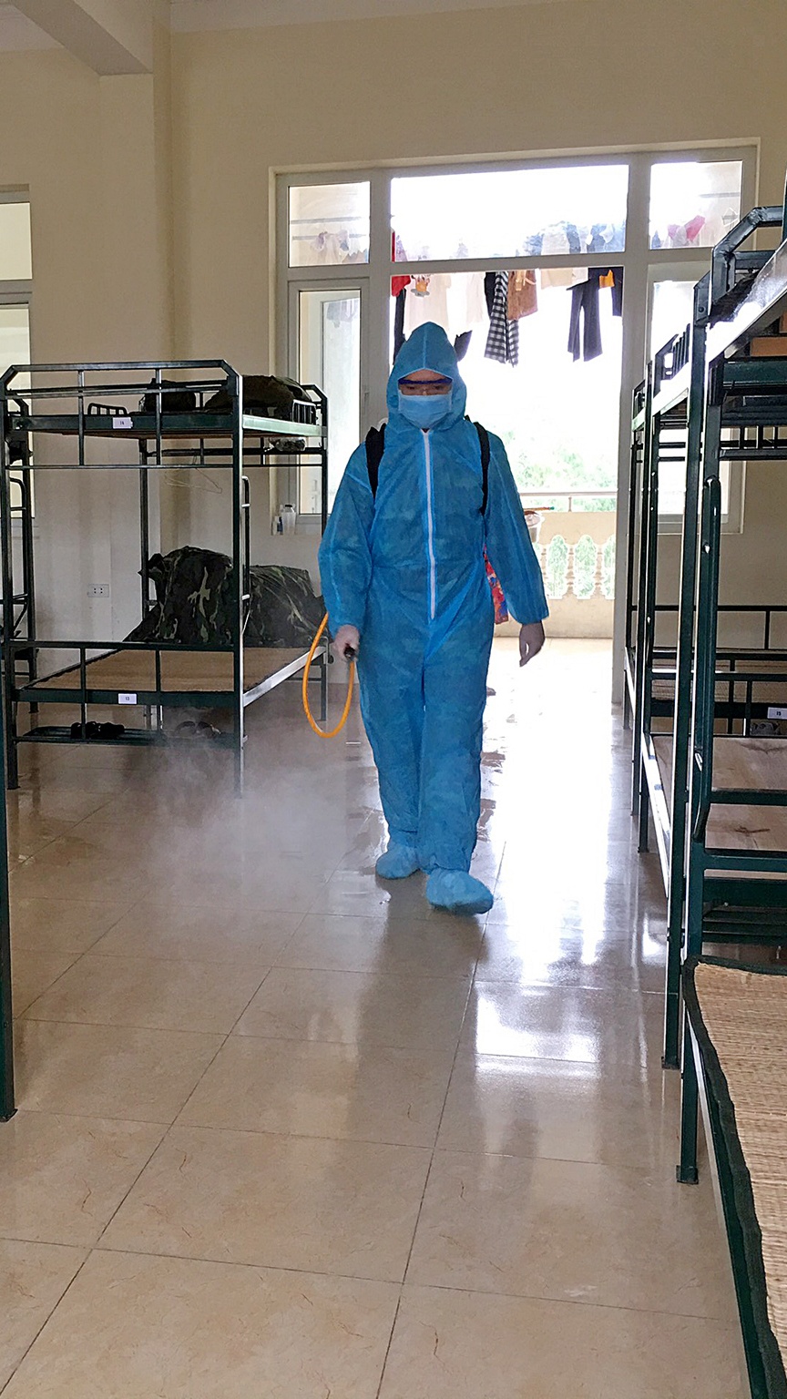 | Nơi ở của chúng tôi được phun hóa chất khử khuẩn thường xuyên. Dung dịch này có mùi nên những lúc như vậy, chúng tôi ra ngoài hành lang chờ đợi. Tiếng ồn của động cơ khiến bọn trẻ phấn khích, nói cười rôm rả. |