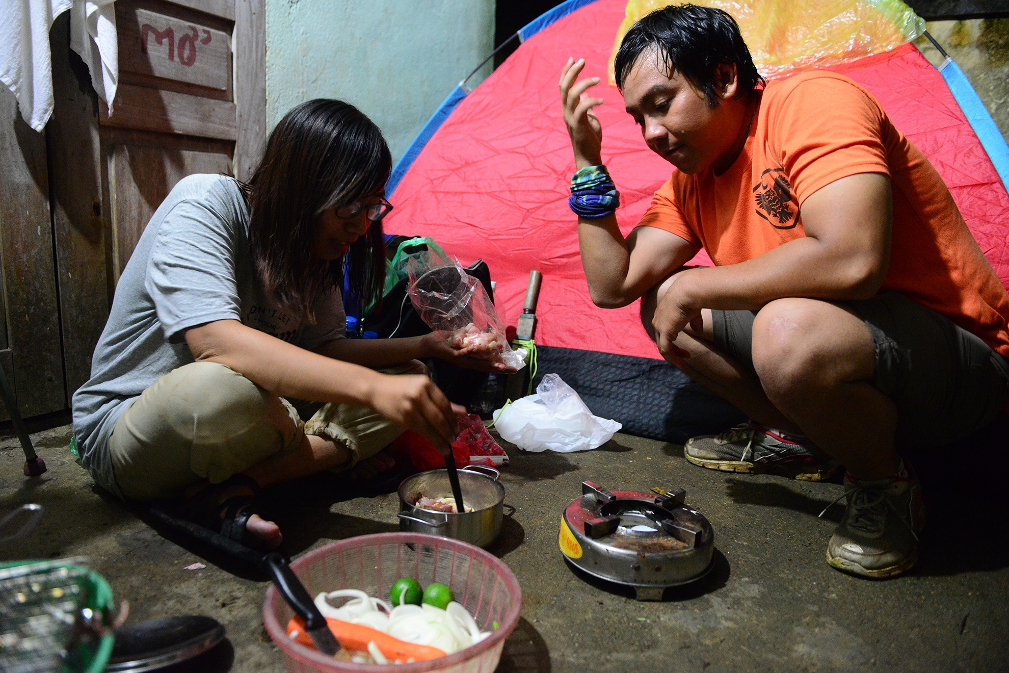 | Những khách liên hệ trước với người trưởng trạm vi-ba được giúp sắp xếp chỗ nghỉ tạm. Do khá chật và đông người đăng ký nên một vài người phải trải chiếu nằm ngủ tạm trong góc bếp cũ. Không chăn không màn, nỗi lo lớn nhất của những người lần đầu lên đỉnh Nà Lay đó là rất nhiều muỗi vào ban đêm.