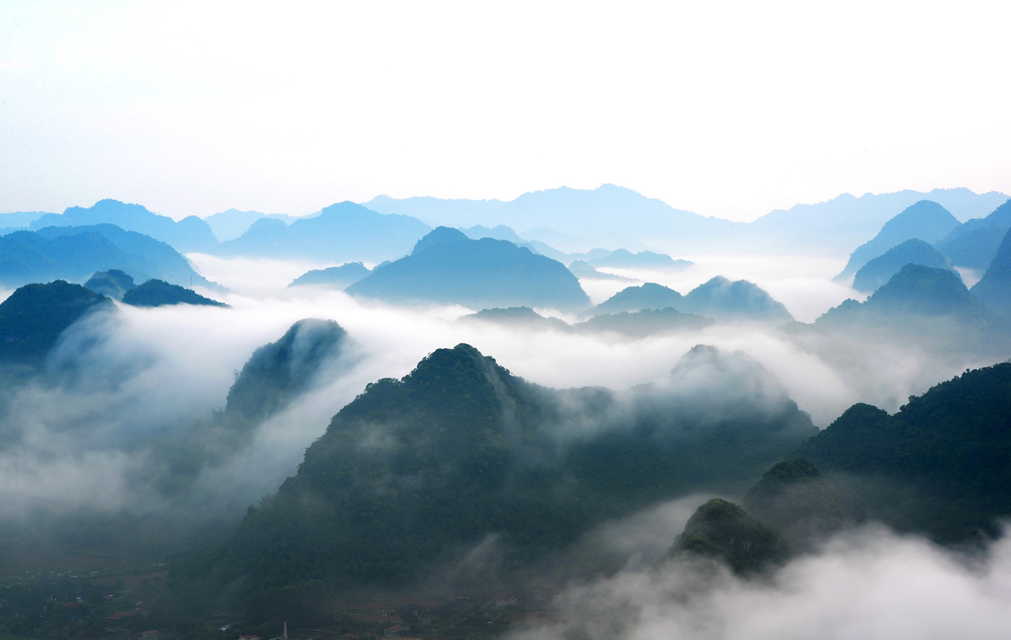 | Hoặc cảnh tượng mây luồn bồng bềnh trôi len lỏi khắp các khe núi đẹp như tranh thủy mặc.