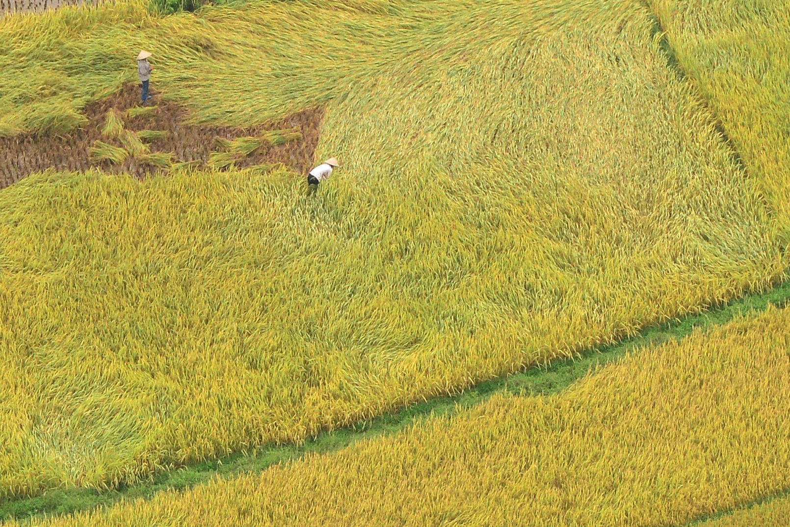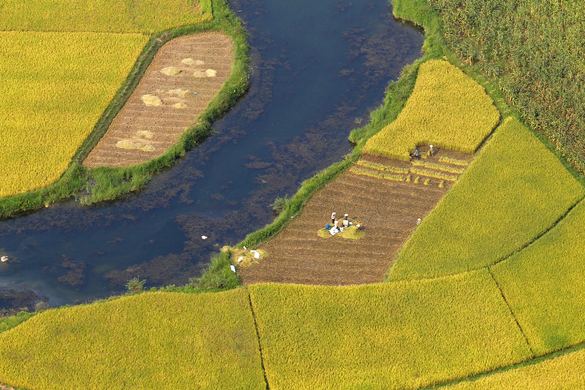 Người may mắn khi đến Bắc Sơn sẽ gặp đúng dịp thảm lúa vàng ươm chín vàng mới bắt đầu gặt. Ảnh: Hoàng Hải Thịnh.