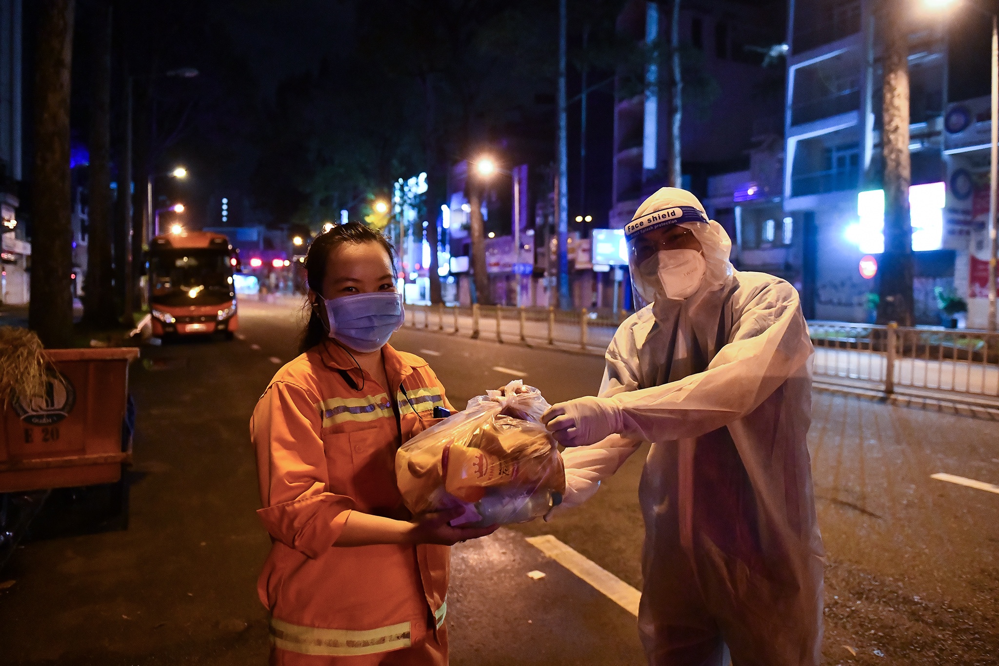| Những chuyến tặng quà cho người dân bị ảnh hưởng bởi dịch bệnh thường kết thúc khi ngày mới chuẩn bị bắt đầu. Khá mệt mỏi, chúng tôi khẩn trương ra về tìm chút gì ăn cho đỡ đói rồi nghỉ ngơi. Trên đường về cũng là lúc chúng tôi bàn nhau kế hoạch tặng quà của ngày mai. |