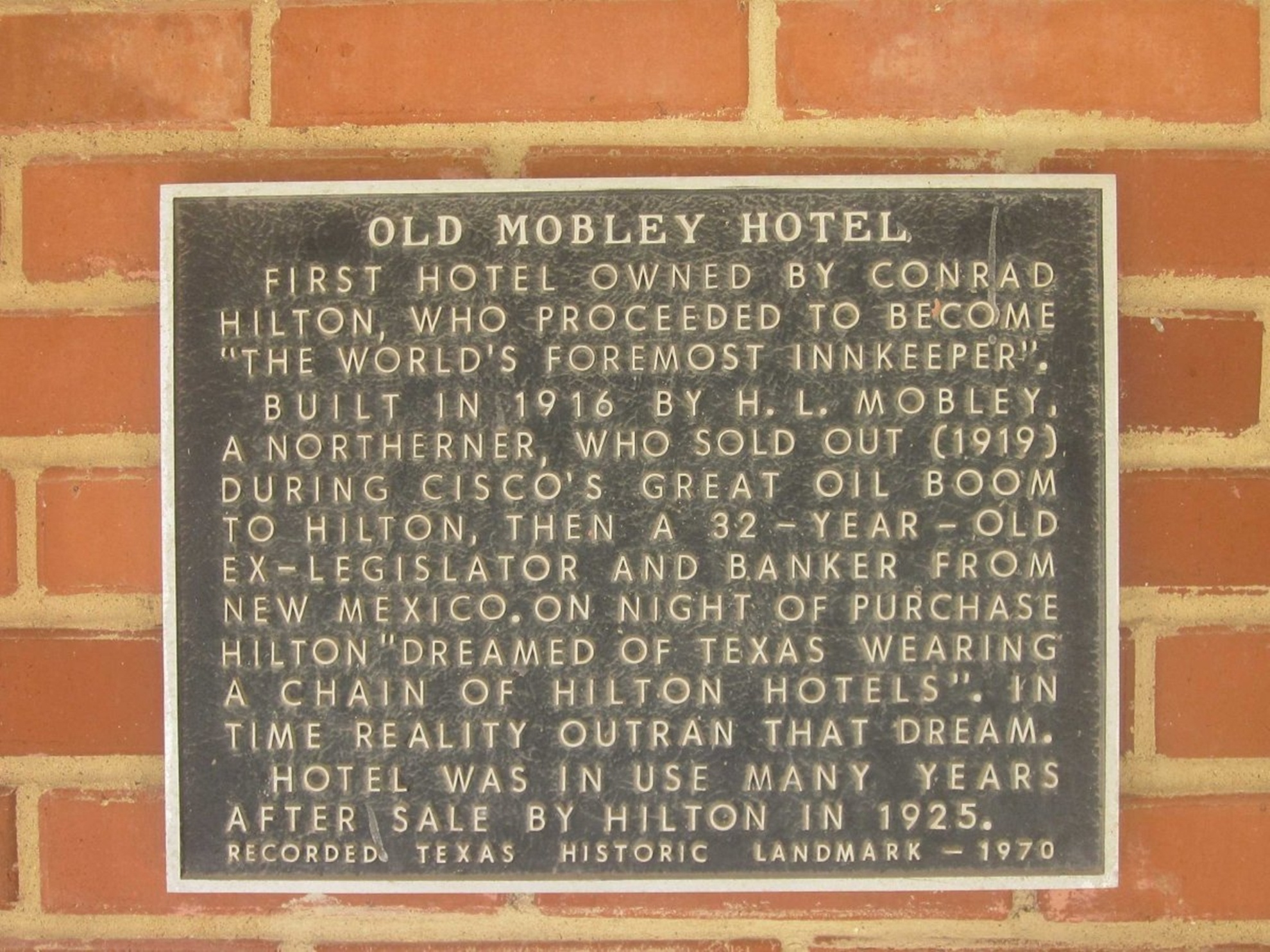 Mobley, “khách sạn Hilton đầu tiên”, hiện là trung tâm Conrad Hilton. Ở đây vẫn còn các tấm biển hiệu cũ và hai phòng được giữ từ năm 1919. Trong đó, một là nơi đặt phòng thương mại Cisco và phòng còn lại dành cho các sự kiện đặc biệt như tiệc cưới. |