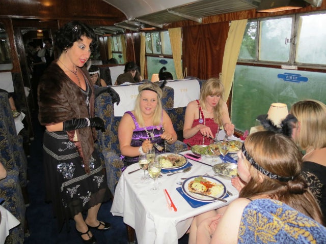 | Trên tàu còn có những hành khách ăn mặc kỳ lạ với những bộ trang phục cổ điển. Ảnh: GCRailway. |