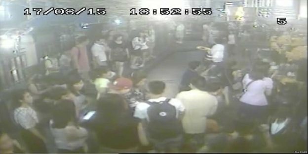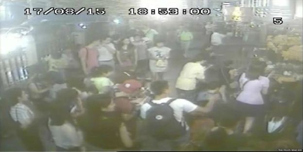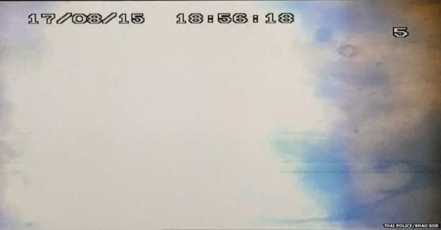 | 18h55'18: Hình ảnh cầu lửa ở camera giám sát trong đền Erawan lúc quả bom phát nổ. |