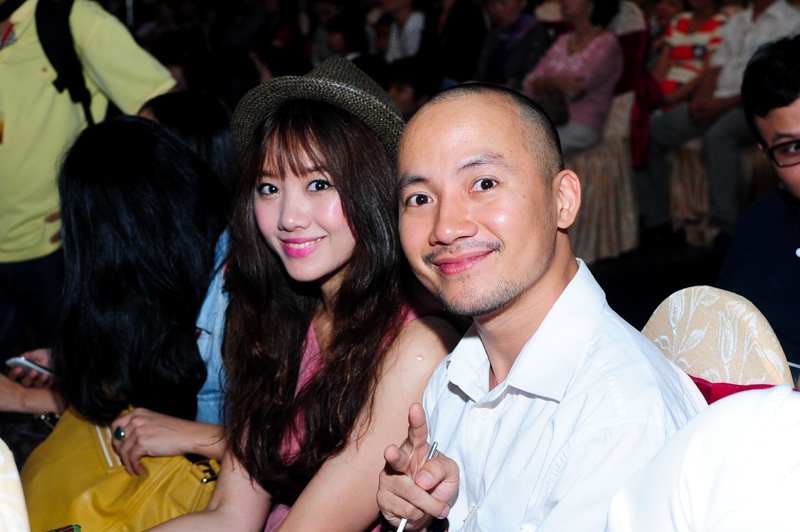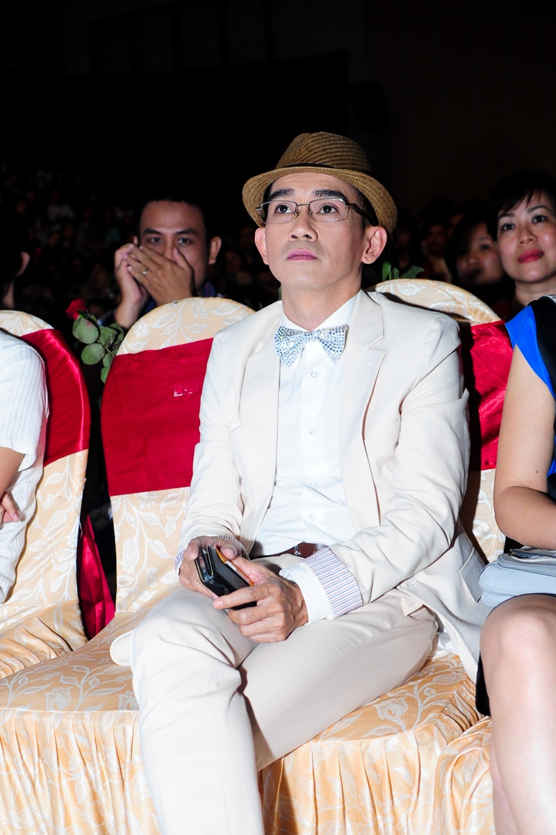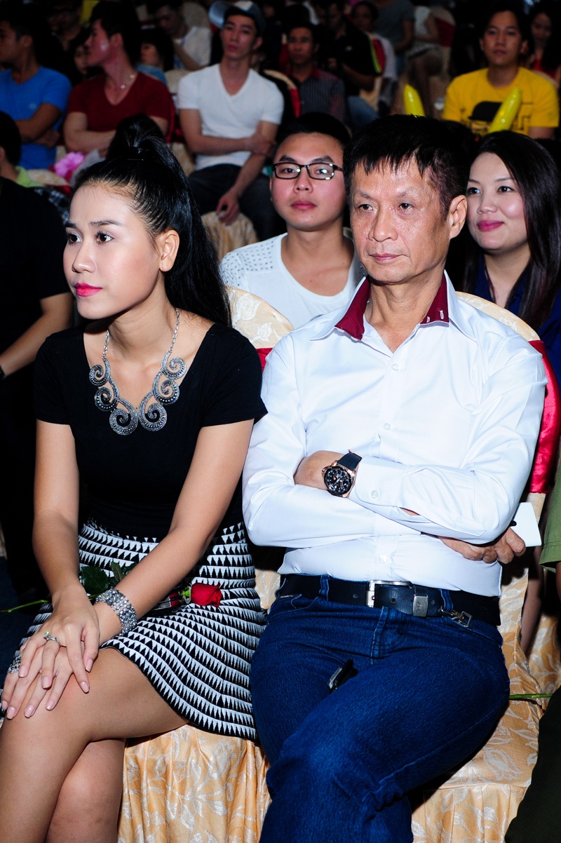 | Lê Hoàng đăm chiêu ngồi xem các tiết mục của Phương Thanh. Đạo diễn đi cùng hot girl trẻ. |