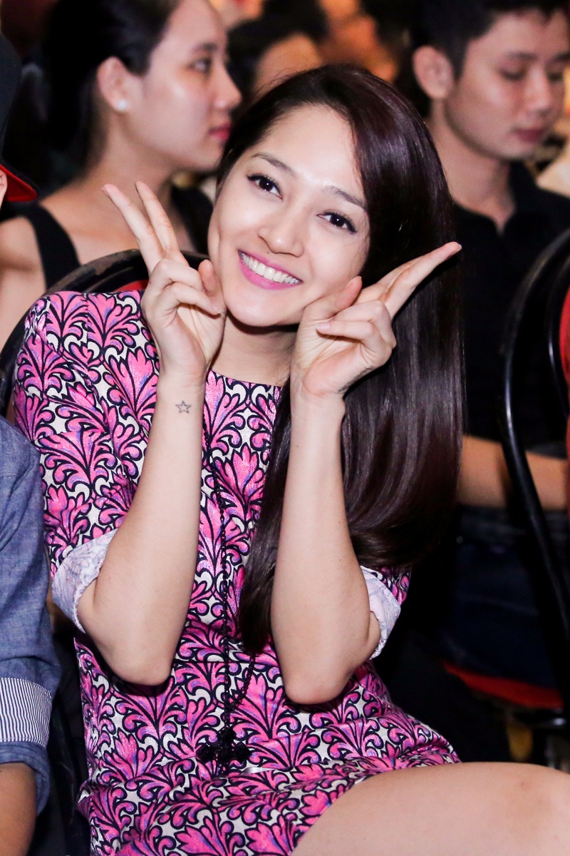 | Hot girl Hari ăn mặc trẻ trung và nổi bật khi được bạn trai Tiến Đạt tháp tùng đi xem ca nhạc. Gần đây, Hari Won liên tục khoe sự ga lăng của chàng rapper khi chăm sóc cô tận tình, đưa đón cô đi học vào mỗi sáng. Người đẹp gốc Hàn tỏ ra rất hãnh diện về người yêu của mình. |