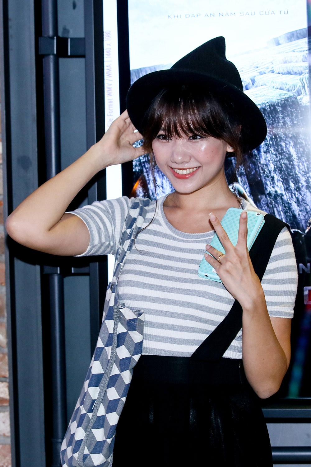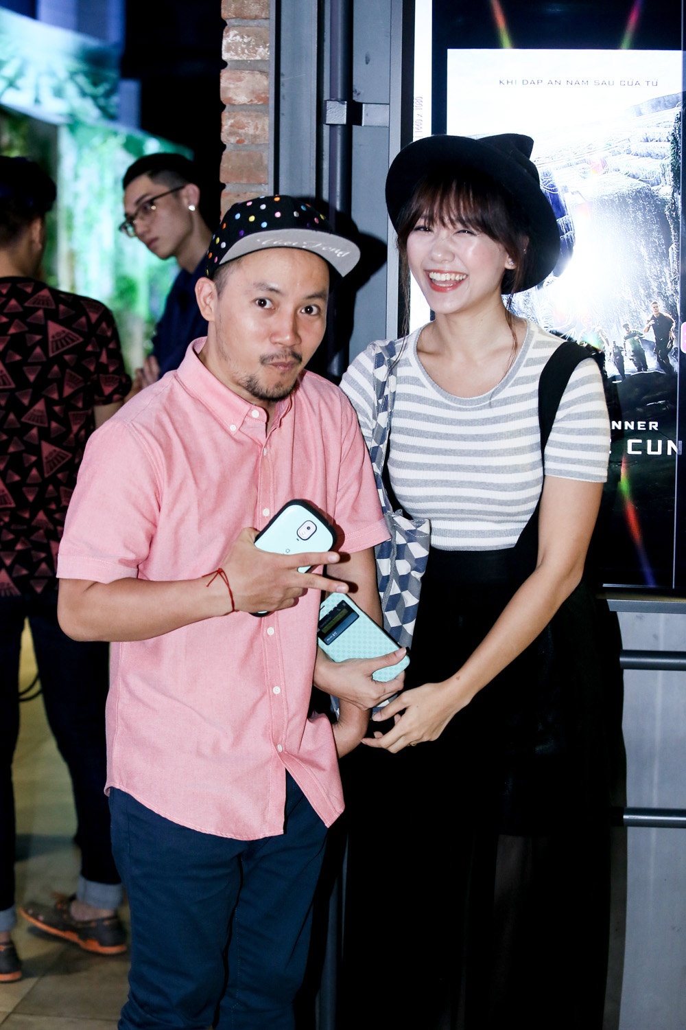 | Tối 11/9, Hari Won khoác tay bạn trai rapper Tiến Đạt đi xem phim Giải mã mê cung tại TP.HCM. Tuy nhiên, vì chấn thương ở chân do ngã khi leo núi nên người đẹp vẫn đi khập khiễng và phải vịn vào bạn trai để thuận tiện đi lại. |